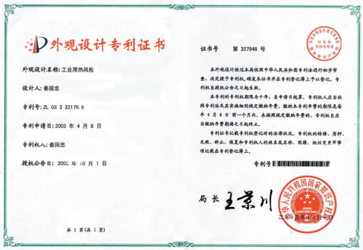 本廠 始建于1994年, 擁有塑膠件注塑生產(chǎn)加工、發(fā)熱芯生產(chǎn)線、成品裝配線,是從事電熱工具:熱風槍、熱熔膠槍、塑膠焊槍等電器產(chǎn)品開發(fā)、生產(chǎn)的專業(yè)廠家,擁有二十多年的生產(chǎn)經(jīng)驗,其中工業(yè)用的調(diào)溫、恒溫、數(shù)字顯示、數(shù)字控制溫度的熱風槍、熱熔膠槍已處于國際地位,并獲得多項專利。2000年榮獲《質(zhì)量監(jiān)督檢測中心合格產(chǎn)品》,2002年經(jīng)德國CE認證中心認證,榮獲CE證書。2003年榮 獲國家輕工部頒發(fā)的《中國名優(yōu)產(chǎn)品》證書,并...